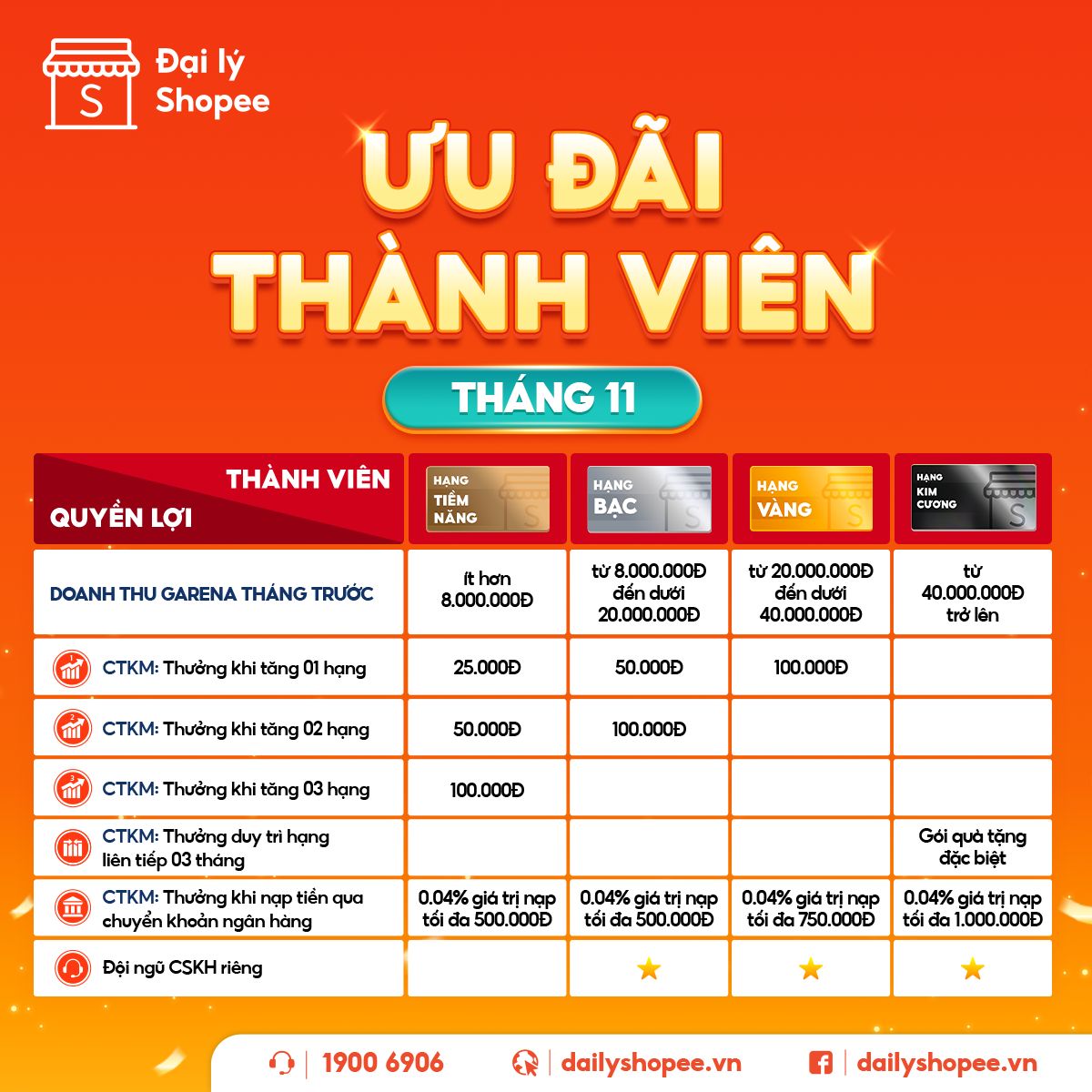 - Đại lý Shopee khuyến khích quý Đại lý thường xuyên theo dõi trang chủ để cập nhật các thông tin ưu đãi dành cho thành viên.