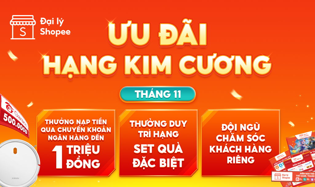 | Tất cả Đại lý đạt Hạng Kim Cương liên tiếp trong tháng 10, 11 & 12/2025 | - Thẻ Garena với tổng trị giá 500.000Đ - Set Poster |