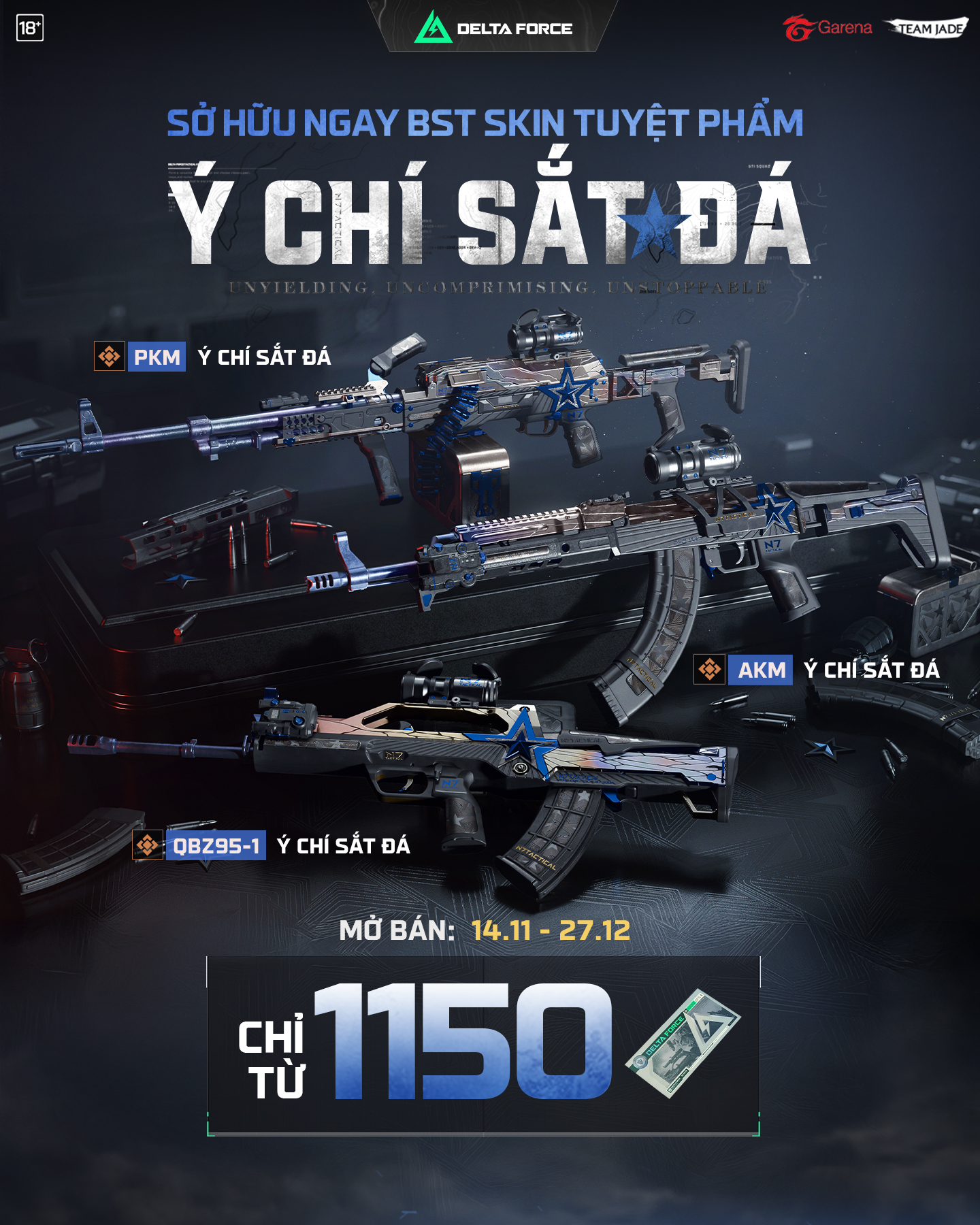 Chỉ 1150 Vé Delta, chọn ngay QBZ95-1, PKM hoặc AKM để trở thành người đầu tiên sở hữu BST Ý Chí Sắt Đá trong lần trở lại này! Chi tiết xem tại đây