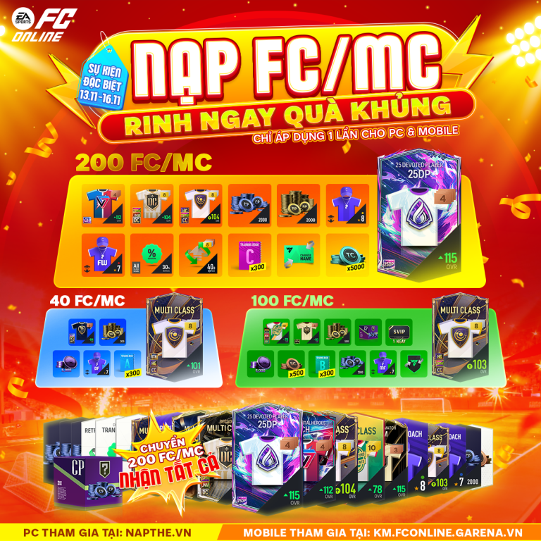 Khi đạt mốc 200 FC/MC, các HLV sẽ nhận được các siêu sao mùa 25DP mới nhất với Gói 25DP 115+ (2~4), bên cạnh đó còn là cơ hội sở hữu các siêu phẩm lên đến +10 với Gói COC, OTW, BOE, VTR, MOG 78+ (DF+GK) (+8~+10). Chi tiết xem tại đây