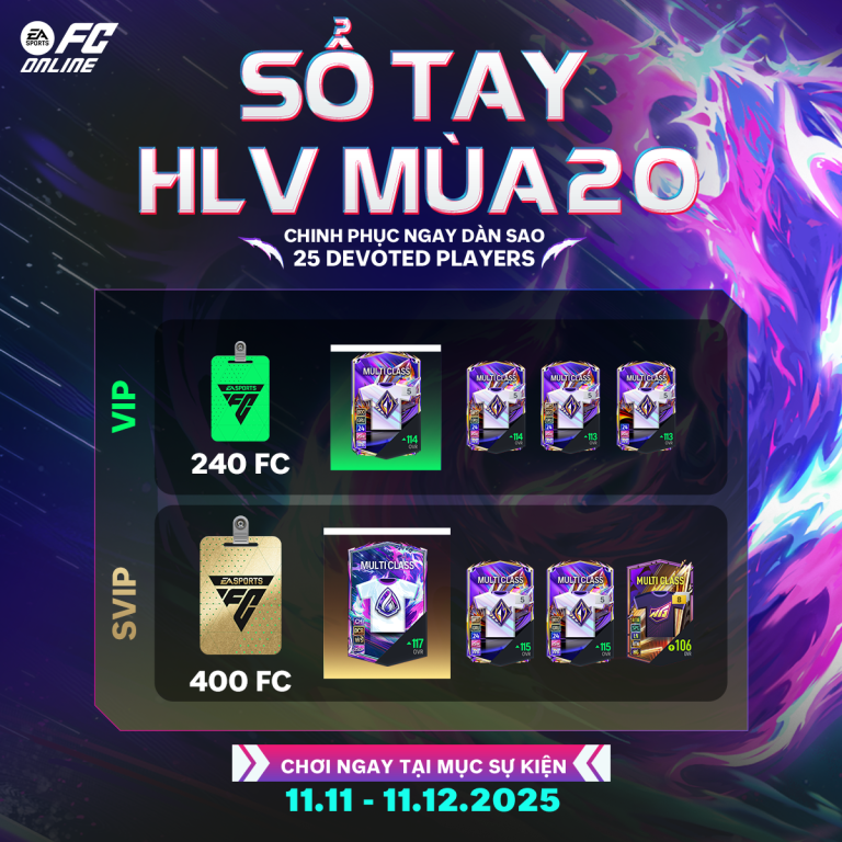 Sổ Tay HLV đã trở lại trong tháng 11.2025, đem đến vô số phần quà nâng cấp chất lượng như mùa thẻ mới 25 Devoted Players cùng dàn siêu phẩm quốc dân mạ vàng. Chi tiết xem tại đây