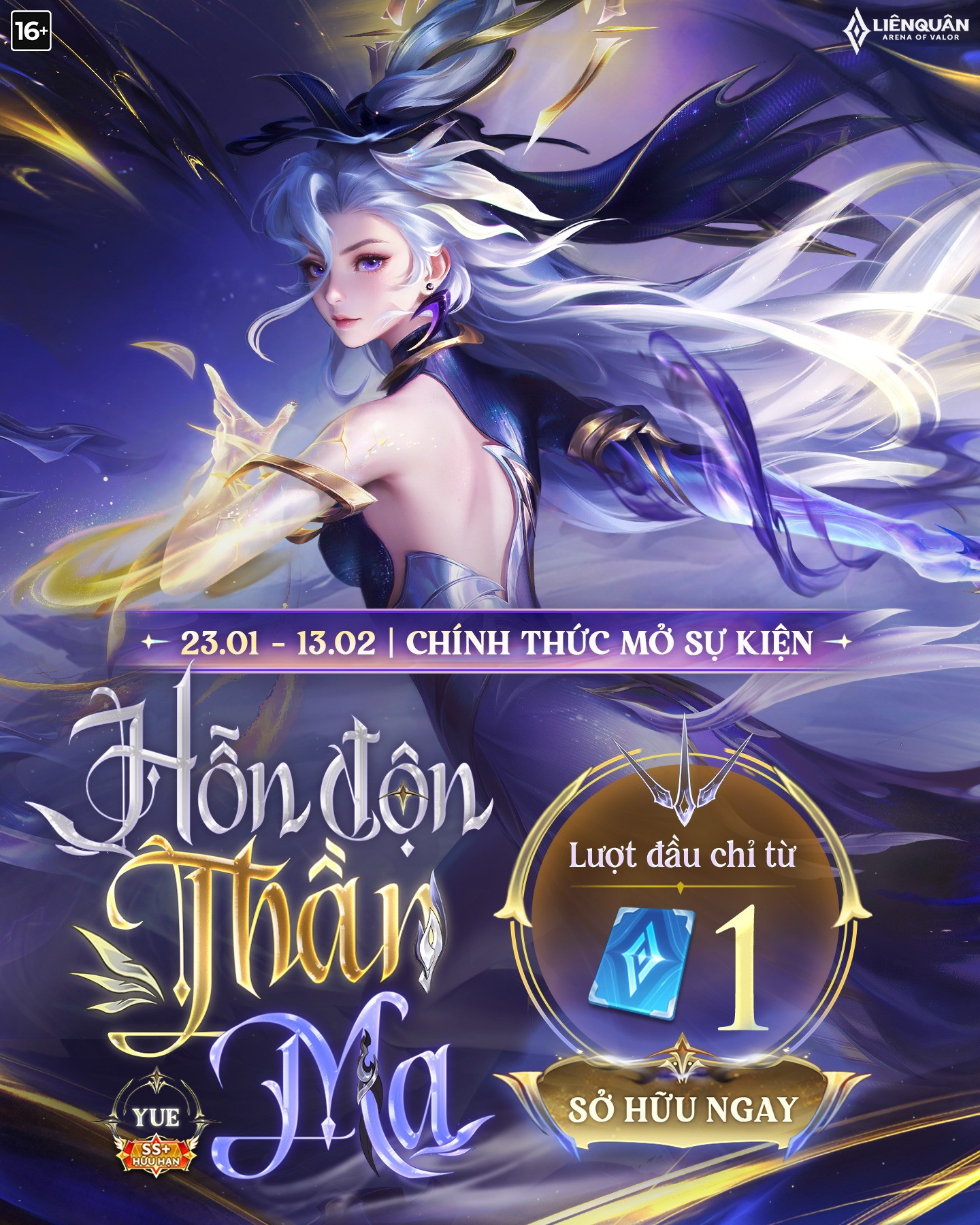 Còn chần chờ gì nữa, vào game và tham gia ngay sự kiện mở bán Yue Hỗn Độn Thần Ma để có cơ hội sở hữu trang phục SS+ hữu hạn đầy mê hoặc, với lượt đầu chỉ từ 1 Quân Huy! Chi tiết xem tại đây