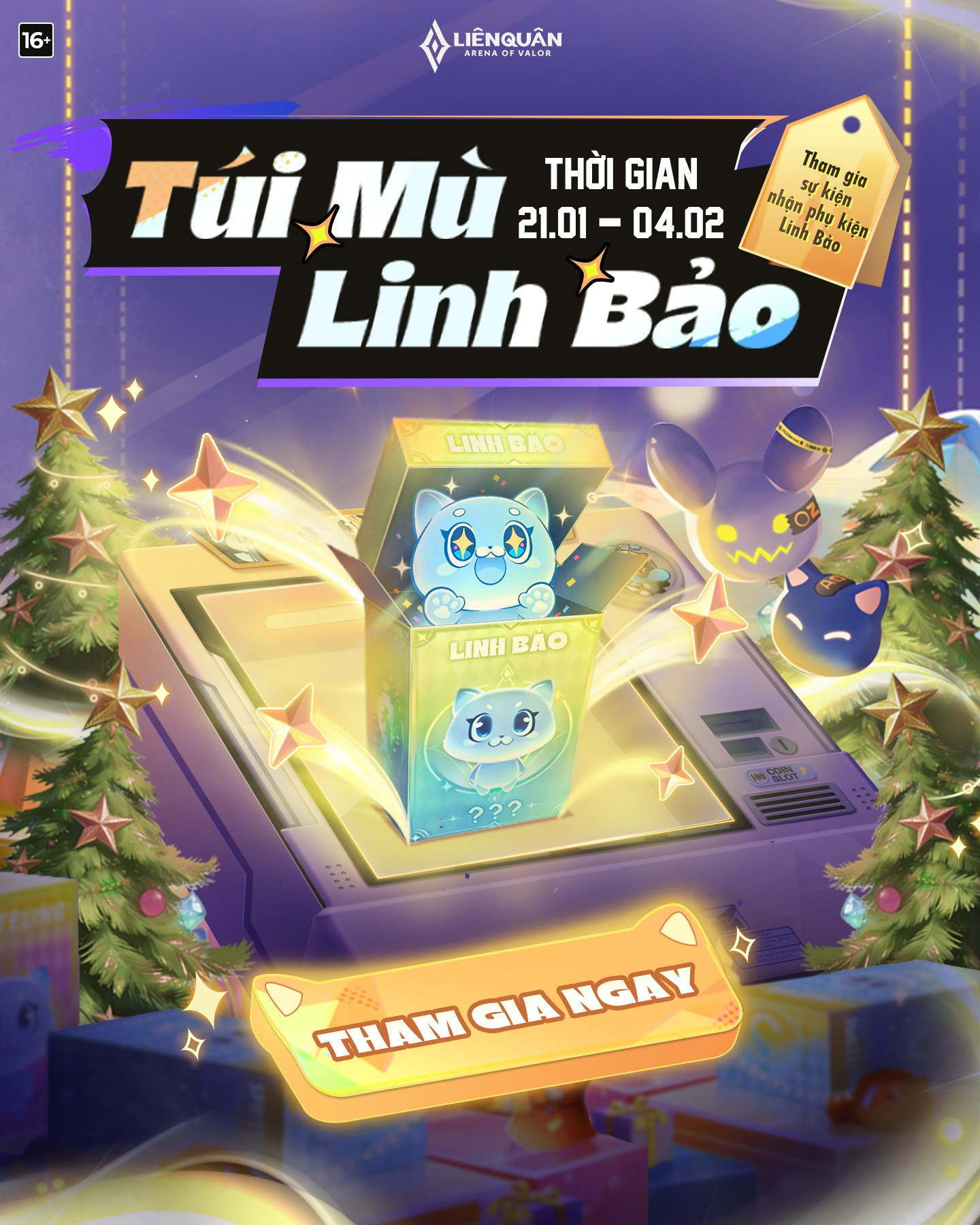 Từ 21.01 – 04.02, chỉ cần hoàn thành nhiệm vụ để thu thập Xu Túi Mù, mở Túi Mù Linh Bảo và rinh về loạt phụ kiện dành cho Linh Bảo cùng nhiều vật phẩm hấp dẫn! Chi tiết xem tại đây